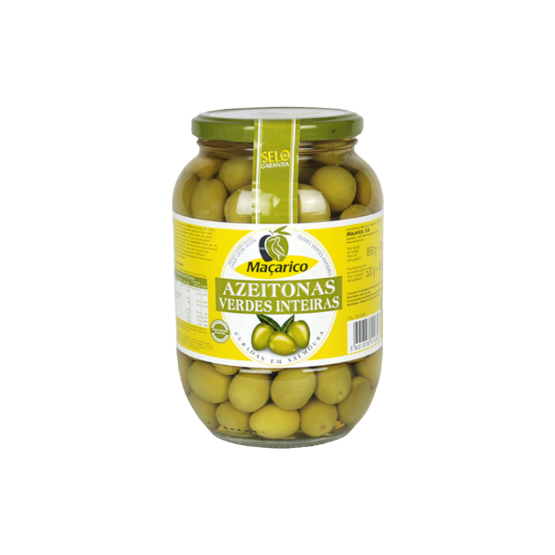 Olives vertes bocal MACARICO 520G. Ingrédients : olives, eau, sel, correcteurs d’acidité : acide lactique, lactate de calcium, acide citrique. Antioxydants : acide ascorbique.