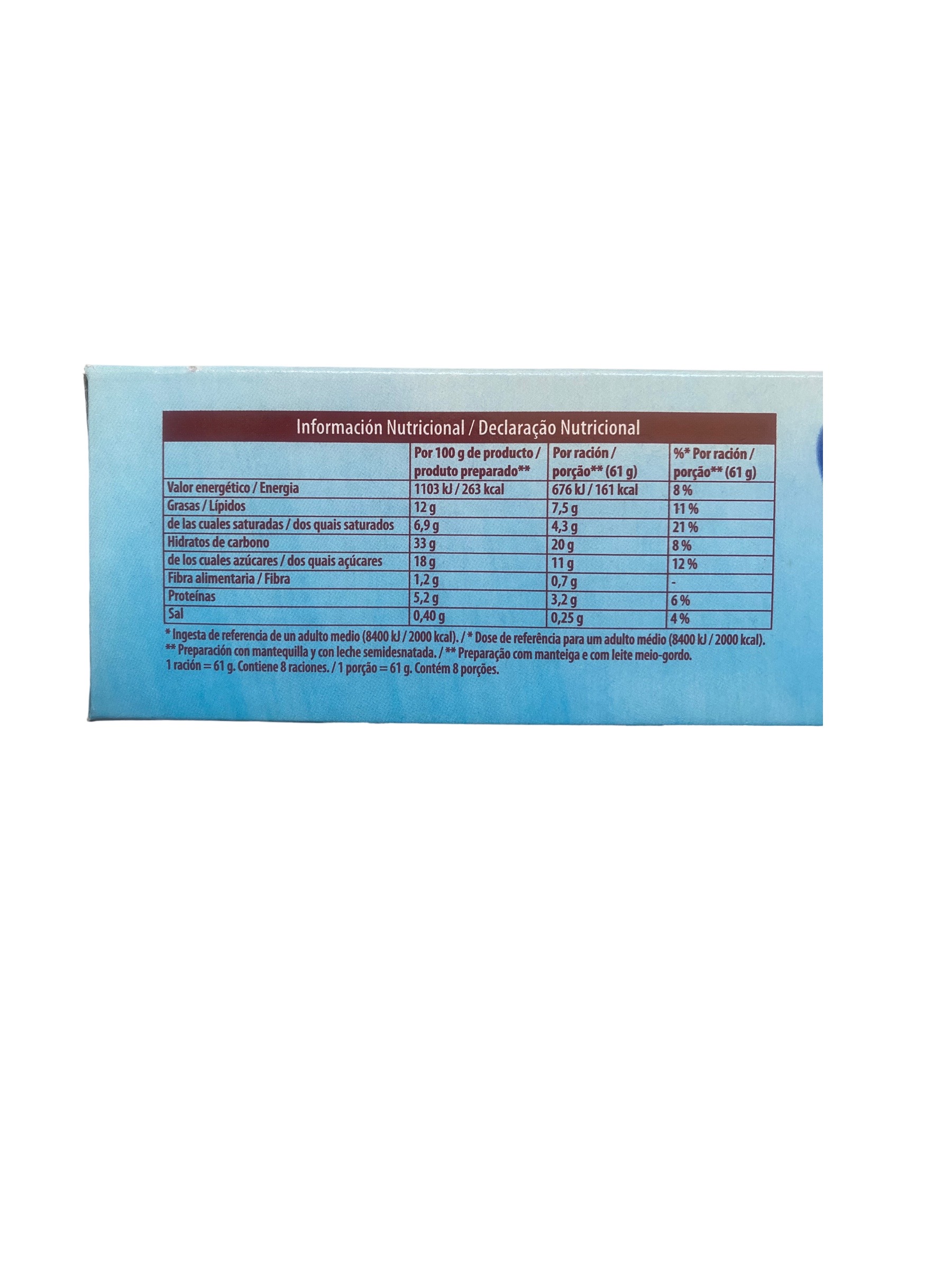 * Dose de référence pour un adulte moyen (8400 kJ / 2000 kcal). * Apport de référence pour un adulte moyen (8 400 kJ / 2 000 kcal). ** Préparation avec beurre et lait demi-écrémé.